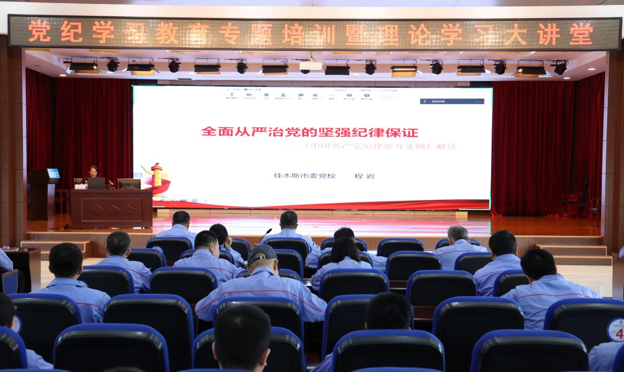 為深入學(xué)習(xí)貫徹習(xí)近平總書記關(guān)于開展黨紀(jì)學(xué)習(xí)教育的重要講話和重要指示精神,認(rèn)真學(xué)習(xí)貫徹《中國共產(chǎn)黨紀(jì)律處分條例》,按照公司黨委工作安排,5月27日,哈電集團(tuán)佳木斯電機(jī)股份有限公司(以下簡稱“佳電股份”)開展黨紀(jì)學(xué)習(xí)教育專題培訓(xùn)暨理論學(xué)習(xí)大講堂,邀請佳木斯市委黨校教授程巖以《全面從嚴(yán)治黨的堅強(qiáng)紀(jì)律保證》為題作專題培訓(xùn),佳電股份400余名黨員通過現(xiàn)場或視頻會議方式參加培訓(xùn)。