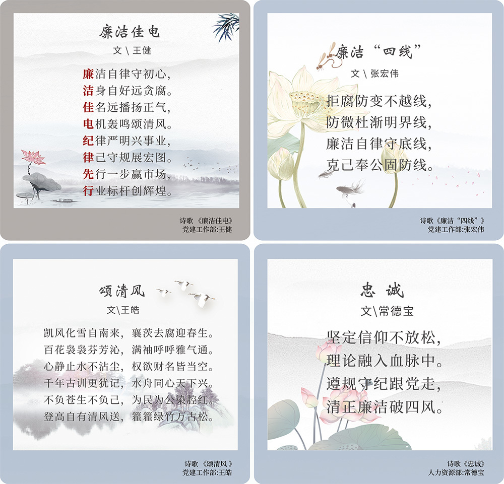 此次活動(dòng)從征集到成功展出得到了公司各直屬黨組織和廣大黨員干部職工的積極響應(yīng)和踴躍參與,共征集書法、繪畫、詩詞、攝影、手工、微視頻等各類作品83件(個(gè)),作品緊扣“清廉”主題,創(chuàng)作新穎、寓意深刻,展現(xiàn)出濃厚的廉潔文化氛圍。