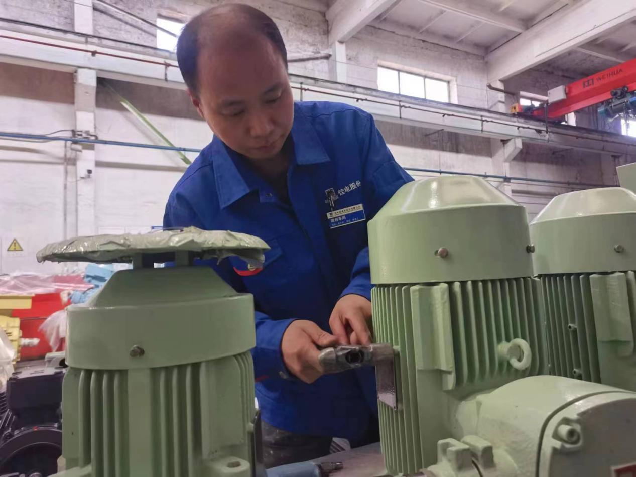 正值“五一”假期,為保證重點項目工期,軸瓦裝配班組最年輕的裝配工孫德才,主動與師傅們一道加班加點搶任務(wù),在師傅們的悉心指導(dǎo)下,保質(zhì)保量完成了同步機(jī)磁極絕緣套裝工作?!霸谒砩衔覀兛吹搅思央娙说姆瞰I(xiàn)與奮斗,正是每一個奮戰(zhàn)在工作崗位的佳電人,才匯成公司高質(zhì)量發(fā)展的強(qiáng)大動力”師傅們說。