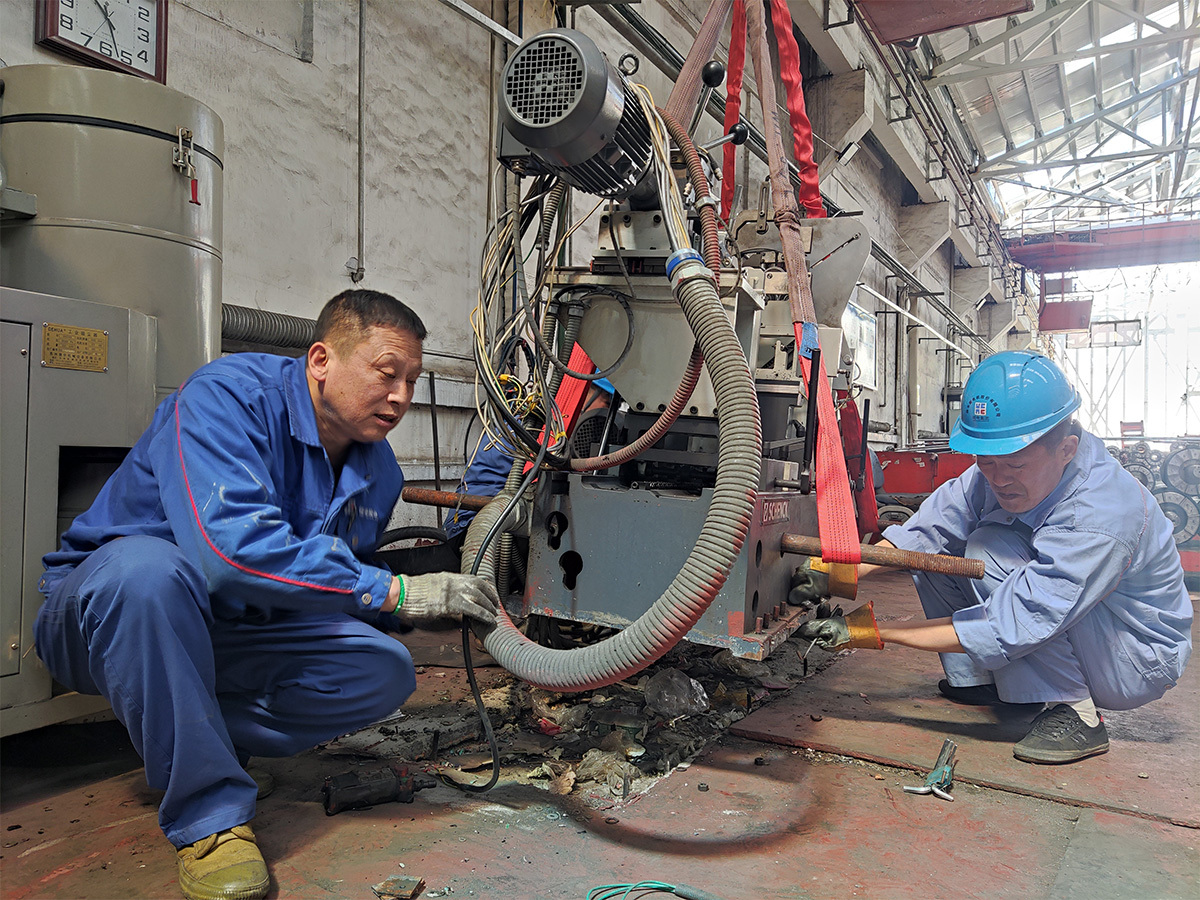 設(shè)備與信息化部在部門領(lǐng)導(dǎo)的帶領(lǐng)下,對小型車間七棟動平衡機(jī)和平衡吊進(jìn)行技改搬遷工作。機(jī)電修班組長杜鋒主動牽頭,舍小家為大家,與班組職工緊密配合,克服了各種困難,順利完成工作,節(jié)約了改造費用,保證了技改工期。