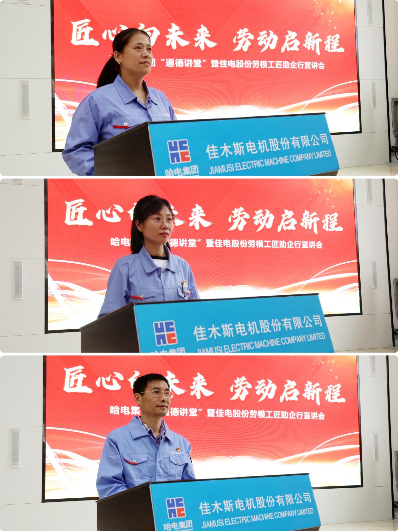 本次“道德講堂”宣講團(tuán)成員由公司獲得全國(guó)勞動(dòng)模范、黑龍江省龍江大工匠大型車間裝配工別林;全國(guó)五一巾幗標(biāo)兵、黑龍江省創(chuàng)新能手工藝部屏蔽軍工室室主任姜麗麗;黑龍江省龍江工匠、佳木斯市勞動(dòng)模范小型車間嵌線工王福賢組成。以宣講團(tuán)成員深入車間現(xiàn)場(chǎng)進(jìn)行宣講的形式,通過(guò)最質(zhì)樸的語(yǔ)言分別講述題為《在平凡的崗位上演繹責(zé)任與擔(dān)當(dāng)》《以敬業(yè)奉獻(xiàn)鑄就“凡者不凡”》《弘揚(yáng)勞模精神 彰顯工匠本色》的勞模工匠成長(zhǎng)經(jīng)歷、工作經(jīng)驗(yàn)和扎根佳電、甘于奉獻(xiàn)的感人故事。下一步,佳電股份將繼續(xù)貫徹落實(shí)集團(tuán)公司“道德講堂”工作部署,深入生產(chǎn)一線,持續(xù)開(kāi)展“匠心向未來(lái),勞動(dòng)啟新程”主題勞模工匠道德講堂巡講活動(dòng),宣講活動(dòng)自5月24日起至7月上旬結(jié)束。