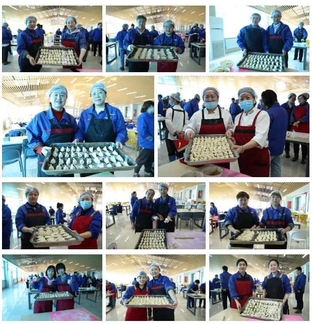 包餃子比賽更是體現(xiàn)出了團(tuán)隊(duì)協(xié)作精神,每組兩名隊(duì)員分工明確,各司其職。選手們紛紛亮出“絕活”,各顯神通,包餡、捏邊、擺造型,瞧,那靈巧的雙手,熟練的動(dòng)作,一手旋轉(zhuǎn)餃子皮,一手揮舞搟面杖,把放進(jìn)餃子餡的餃子皮捏褶出精致美麗的花邊,眨眼間,一個(gè)個(gè)精巧美觀的餃子在選手們的手中誕生了,似月牙、像風(fēng)車、如元寶,活潑多姿,令人垂涎,比賽現(xiàn)場掌聲此起彼伏,熱鬧非凡,參賽女職工們臉上洋溢著幸福的笑容。