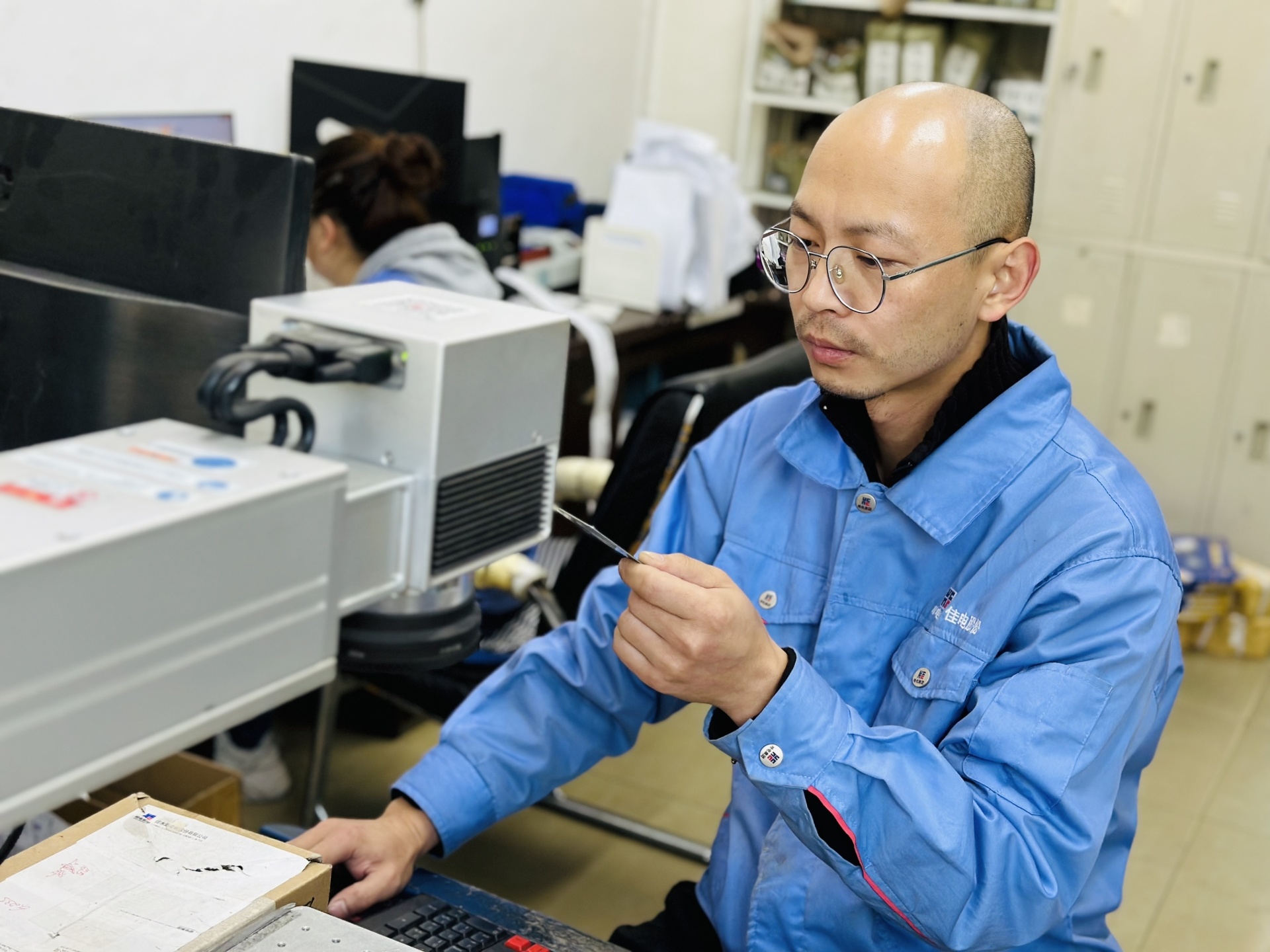 “滋~滋~滋”隨著激光打牌機的運轉(zhuǎn),打牌工呂巖開啟了新一天的工作。下預(yù)報,查詢通知單,查TC,及時與上一層工序人員溝通、核對數(shù)據(jù)、打牌、自檢、貼膜、送檢,將合格的銘牌放到電機上?!罢J真對待每一個環(huán)節(jié),踏實做好每一個細節(jié)?!边@是呂巖的工作態(tài)度。隨著產(chǎn)量的增加,應(yīng)打銘牌的數(shù)量也逐漸增加,面對著每天262個工作號的繁重任務(wù),呂巖毫無怨言,而是按部就班認真核對每一個數(shù)據(jù),打好每一塊牌,每天工作高達十五小時,即使腰酸背痛也依然堅守在崗位上,順利完成領(lǐng)導(dǎo)交付的高強度工作。