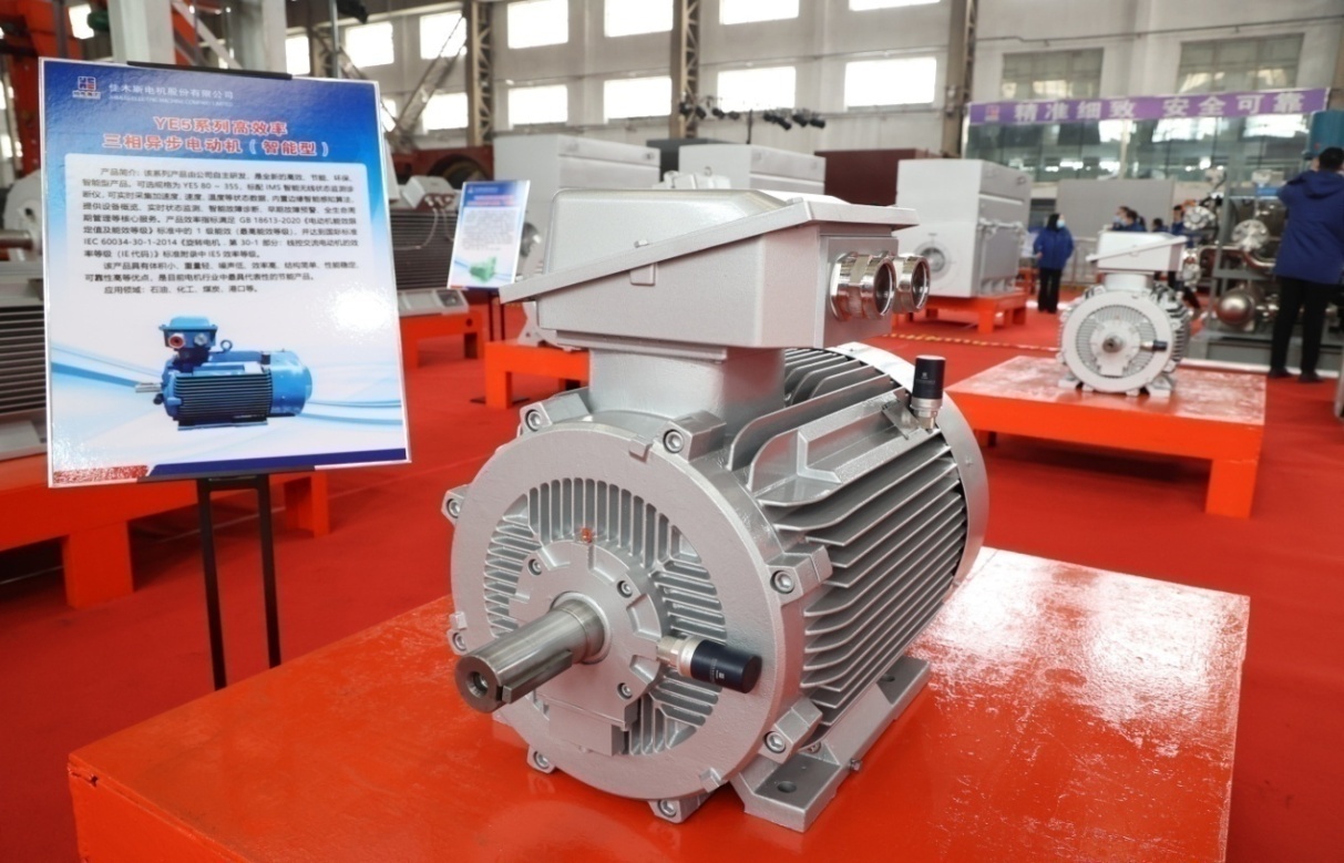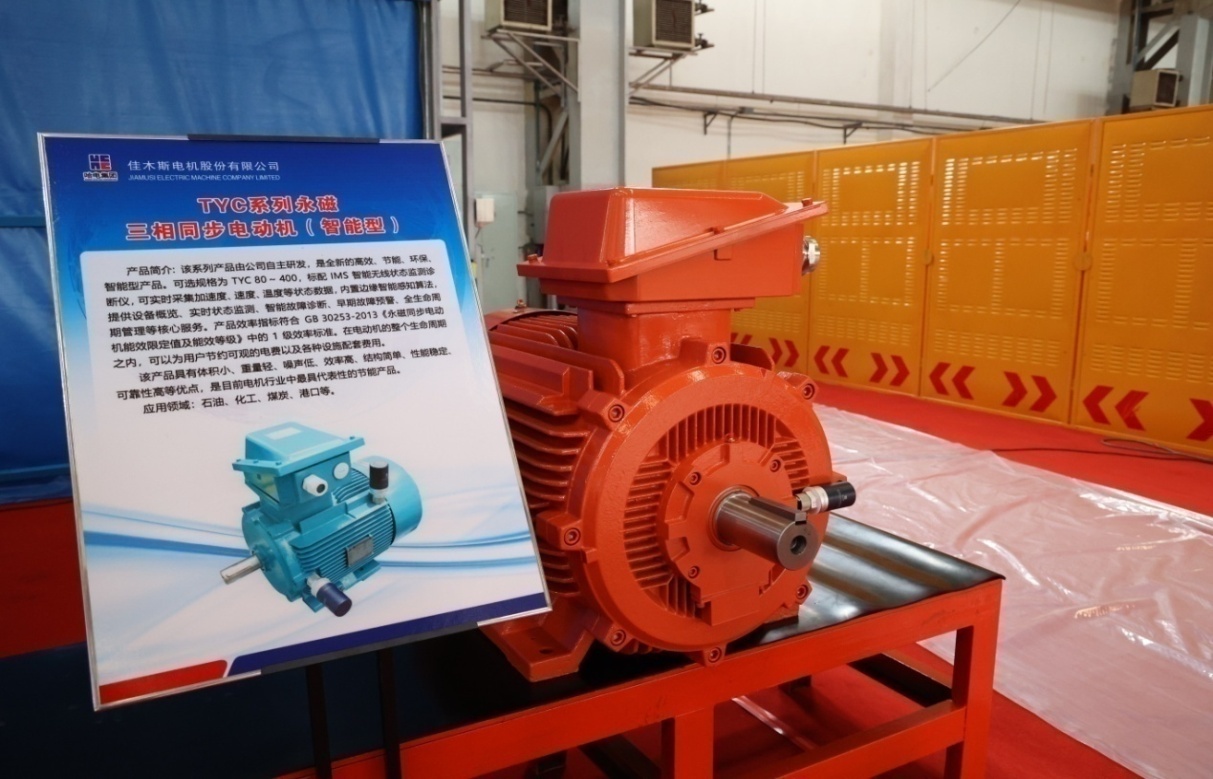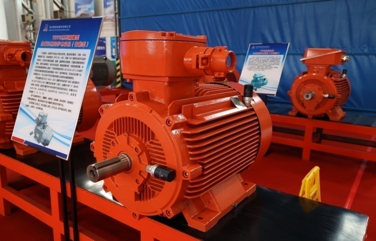 本次發(fā)布會(huì)展出的TBYC系列高效率隔爆型永磁三相同步電動(dòng)機(jī)(智能型)、TYC系列永磁三相同步電動(dòng)機(jī)(智能型)產(chǎn)品,依靠永磁體所提供的磁能替代了傳統(tǒng)電機(jī)電勵(lì)磁產(chǎn)生的磁能,具備電機(jī)損耗低、運(yùn)行可靠性高的特點(diǎn)。在負(fù)載較低時(shí),產(chǎn)品仍可保持較高的運(yùn)行效率和功率因數(shù),解決了機(jī)械設(shè)備在低負(fù)荷時(shí)能耗消耗大的問題。其中部分規(guī)格可配備智能監(jiān)測(cè)終端產(chǎn)品,可實(shí)時(shí)采集加速度、速度、溫度等狀態(tài)數(shù)據(jù),內(nèi)置邊緣智能感知算法,可提供設(shè)備概覽、實(shí)時(shí)狀態(tài)監(jiān)測(cè)、智能故障診斷、早期故障預(yù)警、全生命周期管理等核心服務(wù)。同時(shí),產(chǎn)品效率指標(biāo)能夠滿足1級(jí)能效要求,在電動(dòng)機(jī)的整個(gè)生命周期內(nèi),可以為用戶節(jié)約可觀的電費(fèi)以及各種設(shè)施配套費(fèi)用,是工信部“能效之星”推薦產(chǎn)品,可應(yīng)用于石油化工、電力系統(tǒng)、紡織、工礦企業(yè)以及拖動(dòng)風(fēng)機(jī)、泵類等機(jī)械。