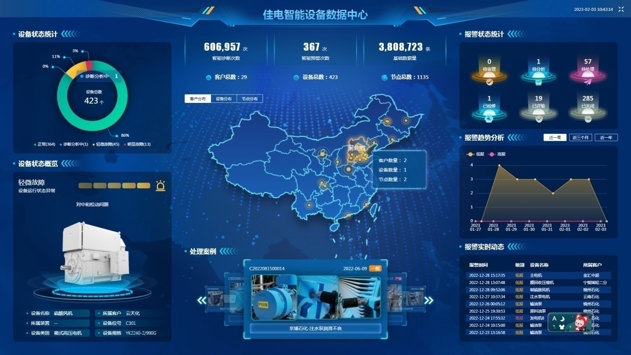 黨的二十大報(bào)告提出,堅(jiān)持把發(fā)展經(jīng)濟(jì)的著力點(diǎn)放在實(shí)體經(jīng)濟(jì)上,推進(jìn)新型工業(yè)化,加快建設(shè)制造強(qiáng)國(guó)、質(zhì)量強(qiáng)國(guó)、航天強(qiáng)國(guó)、交通強(qiáng)國(guó)、網(wǎng)絡(luò)強(qiáng)國(guó)、數(shù)字中國(guó)。佳電股份依靠電機(jī)研發(fā)優(yōu)勢(shì),利用5G、人工智能、大數(shù)據(jù)等技術(shù),專心研發(fā)智能電機(jī),成立專項(xiàng)研發(fā)團(tuán)隊(duì)。五年磨一劍,專注于智能電機(jī)底層技術(shù),收獲了可喜的成果,推出了“設(shè)備全生命周期管理系統(tǒng)、軟硬算一體化解決方案”平臺(tái),為設(shè)備運(yùn)維管理決策提供數(shù)據(jù)支撐,實(shí)現(xiàn)了工業(yè)設(shè)備的預(yù)測(cè)性維護(hù),提高了生產(chǎn)過(guò)程的連續(xù)性、可靠性和安全性。