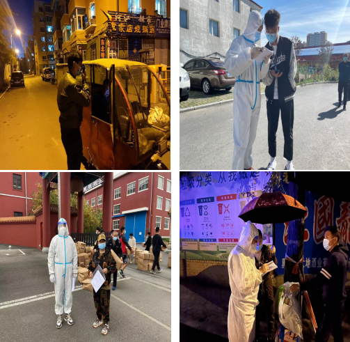 鐘帥每天4點(diǎn)起床,5點(diǎn)開(kāi)始組織隊(duì)員到食堂為職工做飯,分發(fā)一日三餐,搬運(yùn)蔬菜包,為新入廠職工分發(fā)折疊床以及被褥,到超市選取所需生活物品,帶領(lǐng)防疫工作者“大白”到各個(gè)車(chē)間為職工進(jìn)行核酸檢測(cè),從未叫苦叫累;郝健業(yè)主動(dòng)擔(dān)當(dāng)作為,哪需要人手哪就看到他的身影,食堂,超市,搬運(yùn)物資,核酸檢測(cè),經(jīng)常晚上八九點(diǎn)鐘還沒(méi)有回寢;關(guān)昊天為保障食堂能按時(shí)出菜,他經(jīng)常半彎著腰清洗大量餐具,直到工作結(jié)束,腰才能勉強(qiáng)直起來(lái),他還積極參加各種義務(wù)勞動(dòng),宿舍樓道里的窗臺(tái),暖氣,窗框,寢室外的垃圾,一號(hào)路兩旁的落葉,都有他干活的身影。馬秋宇在食堂后廚幫忙,兩筐土豆,加上冰冷的水,讓他切完土豆后手都凍得通紅,握刀的手掌還磨出了水泡,但他隔天還是參與了后廚備菜的工作;喬雙露是唯一一個(gè)在食堂后勤幫忙的女生,每天備菜、后廚的衛(wèi)生清潔以及三餐的分發(fā)都有她的身影,她對(duì)工作毫無(wú)怨言,與男生們一樣默默堅(jiān)持堅(jiān)守。劉成坤有用不完的力氣,搬菜、送餐,他都搶在前面,即使手上和腿上受了傷,他還是每日?qǐng)?jiān)持送餐任務(wù);王文旭主動(dòng)承擔(dān)開(kāi)車(chē)運(yùn)飯工作,每日他都提前到食堂取餐,只為了盡早將一日三餐送到各個(gè)車(chē)間員工的手上,讓大家吃上熱乎乎的飯菜……