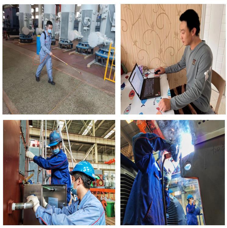 在佳木斯市委市政府的大力支持下,9月20日首批返崗人員駐廠復工。同時,佳電股份領導干部主動駐廠、靠前指揮,全力以赴組織復工復產工作。有的領導干部出差回來直接駐廠工作,并駕車逐家接返廠員工進廠復工;產品制造部、內貿部、設計部、采購中心等部門領導干部第一時間統(tǒng)籌協(xié)調辦公系統(tǒng)遠程鏈接,為居家辦公人員做好線上辦公準備。在領導干部的帶動下,在居家辦公人員的努力下,佳電股份全體駐廠復工人員充分發(fā)揚主人翁精神,一職多能,克服萬難,主動承擔起其他工序及其他車間的生產任務,不講條件加班加點、披星戴月夙夜奮戰(zhàn),在人員不足的情況下依然保質保量完成了生產任務。