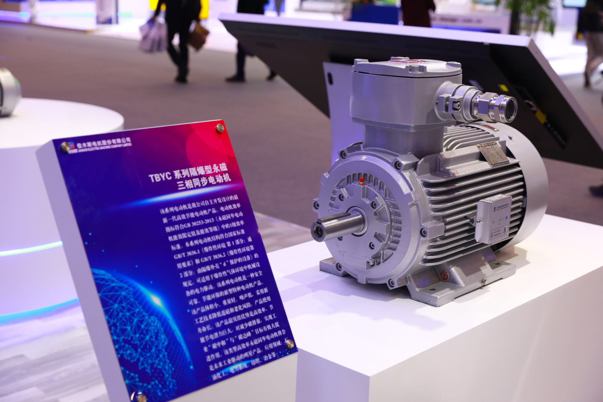 本次參展的T(B)YC系列常規(guī)永磁電機(jī)、T(B)YCP系列低速直驅(qū)永磁電機(jī)、T(B)YCG 系列高速直驅(qū)永磁電機(jī)三個(gè)系列產(chǎn)品,依靠永磁體所提供的磁能替代了傳統(tǒng)電機(jī)電勵(lì)磁產(chǎn)生的磁能,具備電機(jī)損耗低、運(yùn)行可靠性高的特點(diǎn)。在負(fù)載較低時(shí),產(chǎn)品仍可保持較高的運(yùn)行效率和功率因數(shù),解決了機(jī)械設(shè)備在低負(fù)荷時(shí)能耗消耗大的問題。其中高低速直驅(qū)永磁電機(jī)改變了傳統(tǒng)的驅(qū)動(dòng)方式,取消了減速機(jī)、齒輪箱等變速機(jī)構(gòu),降低了傳動(dòng)損耗,系統(tǒng)節(jié)能可達(dá)20%以上,同時(shí)減少了整個(gè)系統(tǒng)的故障點(diǎn),大大提高了傳動(dòng)系統(tǒng)的效率和可靠性,是工信部“能效之星”推薦產(chǎn)品。