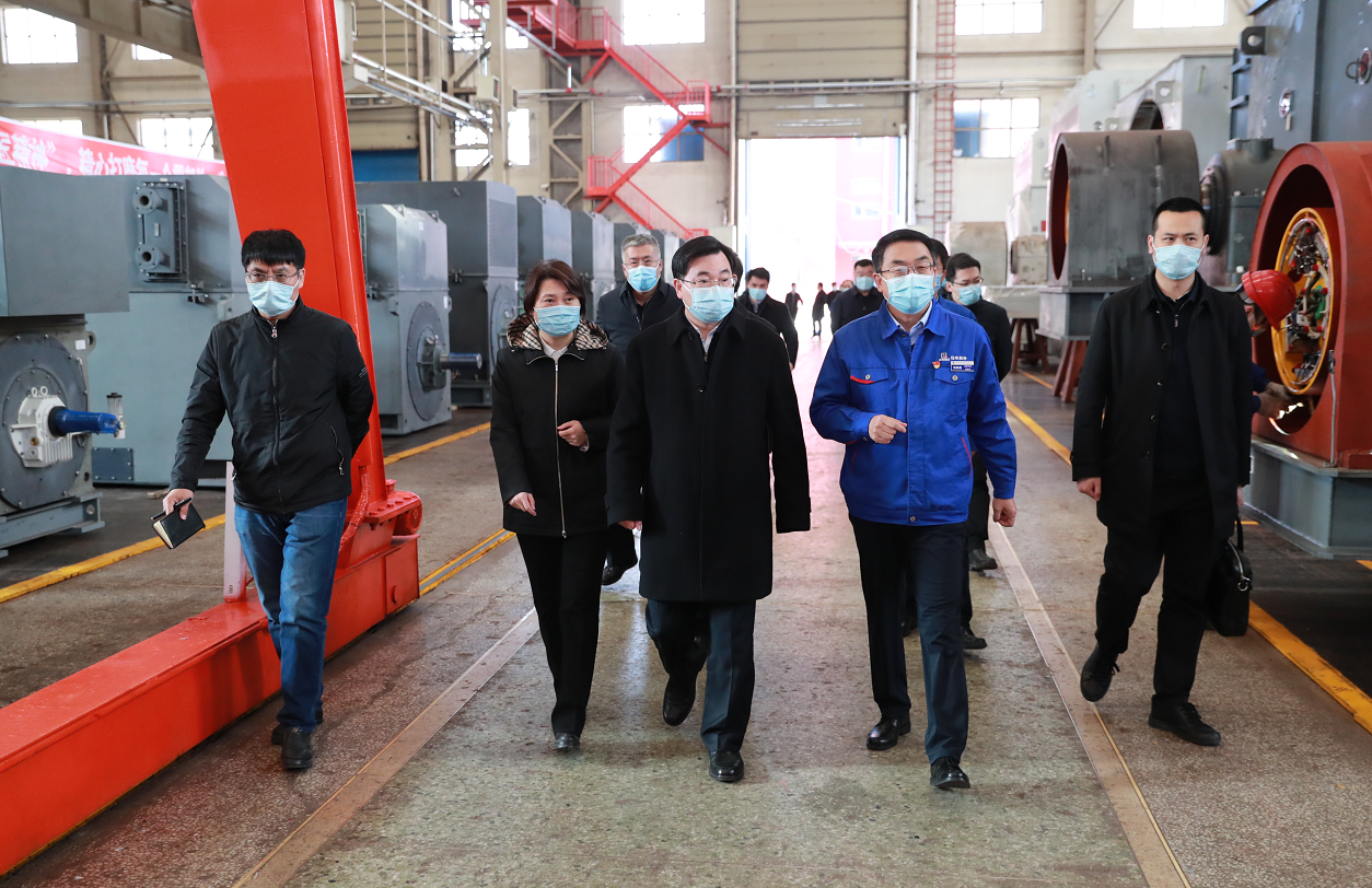 4月3日,黑龍江省委副書記、省長(zhǎng)胡昌升一行到哈電集團(tuán)佳電股份調(diào)研。胡昌升一行深入到佳電股份生產(chǎn)車間,了解企業(yè)改革發(fā)展和生產(chǎn)經(jīng)營(yíng)情況。佳電股份黨委書記、董事長(zhǎng)劉清勇詳細(xì)介紹了公司科技創(chuàng)新、市場(chǎng)開拓、智能制造、高質(zhì)量發(fā)展等情況。