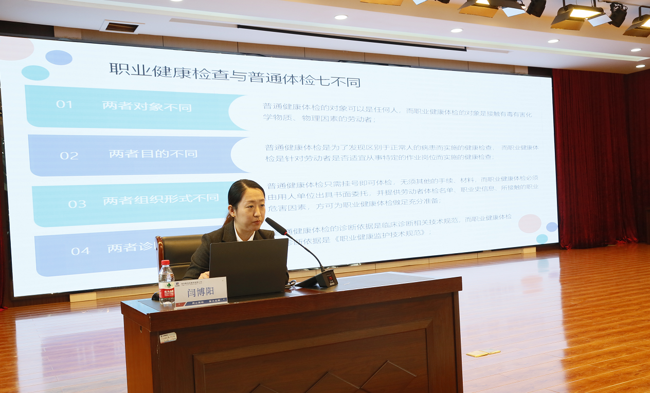 閆博陽副主任從《職業(yè)病防治法》宣教、職業(yè)健康檢查與普通體檢的區(qū)別、職業(yè)病科普和新冠疫苗接種知識四個部分為職工做了深入淺出的輔導。