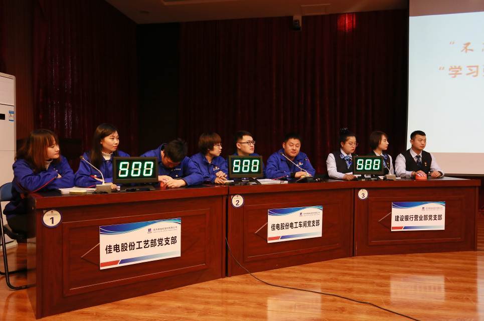 為深入學(xué)習(xí)習(xí)近平新時代中國特色社會主義思想和黨的十九屆四中全會精神,加深廣大黨員對黨的歷史、黨的基本理論、基本路線和基本方略的認(rèn)識和理解,鞏固和強(qiáng)化“不忘初心、牢記使命”主題教育取得成果,11月29日下午,哈電集團(tuán)佳木斯電機(jī)股份有限公司黨委(以下簡稱“佳電股份黨委”)與中國建設(shè)銀行股份有限公司佳木斯分行黨委(以下簡稱“建行佳木斯分行黨委”),在佳電股份會議室共同舉辦了“不忘初心、牢記使命”主題教育“學(xué)習(xí)強(qiáng)國杯”黨建知識競賽。