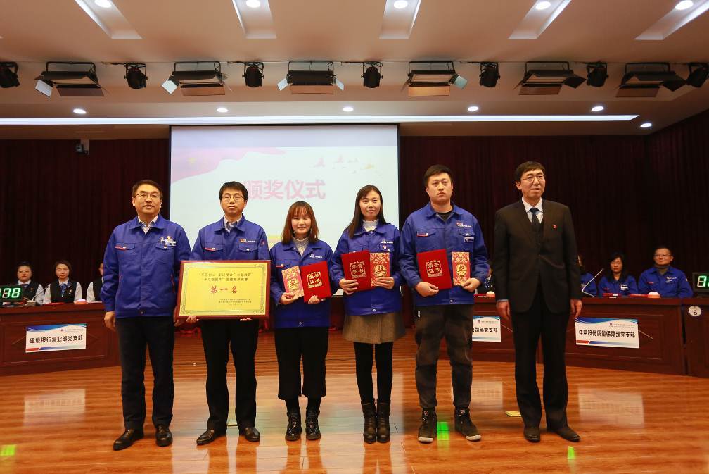 在四輪激烈的競答后,工藝部黨支部代表隊以770分的成績,贏得了本場比賽第1名,大型車間黨支部代表隊以760分的成績,贏得了本場比賽第2名,質(zhì)量保障部黨支部代表隊以750分的成績,贏得了本場比賽第3名,建設(shè)銀行公司部黨支部代表隊、電工車間黨支部代表隊、建設(shè)銀行營業(yè)部黨支部代表隊分別榮獲4-6名。佳電股份黨委領(lǐng)導(dǎo)和建行佳木斯分行黨委領(lǐng)導(dǎo)分別為獲獎人員頒發(fā)獎牌和獎品。