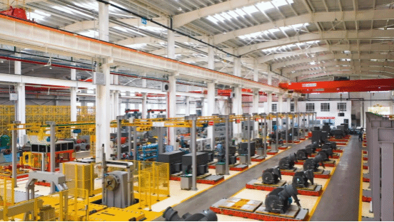 高壓電機數(shù)字化裝配車間,實現(xiàn)定、轉(zhuǎn)子合裝等核心工序的無人化作業(yè),保證產(chǎn)品裝配質(zhì)量。