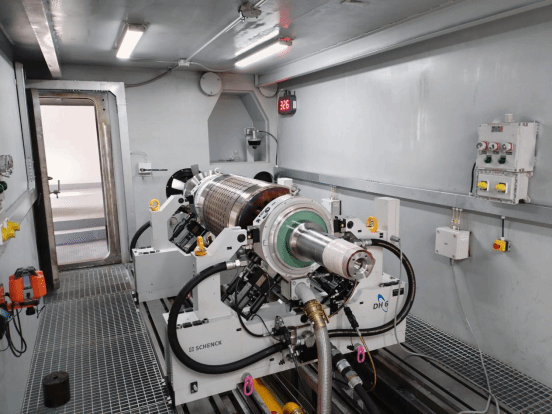 ?超高速轉(zhuǎn)子動平衡:高速轉(zhuǎn)子動平衡設備是高速大型電機制造的基礎,佳電引進了德國申克動平衡機,該平衡機是申克為佳電特制。使高速轉(zhuǎn)子動平衡設備平衡精度G0.4,具有電子角度定位,可實現(xiàn)8000kg、15000rpm轉(zhuǎn)子的高速平衡、超速試驗。